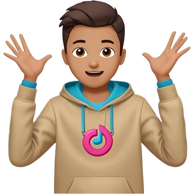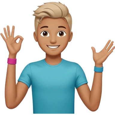 An 11 year old smiling boy with light skin and half long blind hair wearing a light green hoody emoji