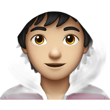 Pale boy, with fluffy black hair and wearing a white hoodie with pink stripes emoji