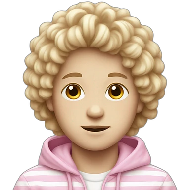 Pale boy, with fluffy hair and wearing a white hoodie with pink stripes emoji