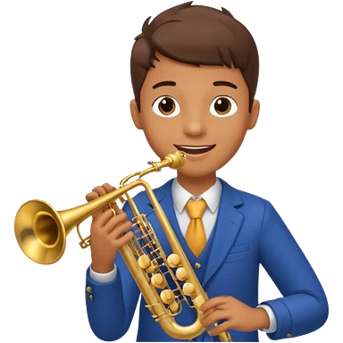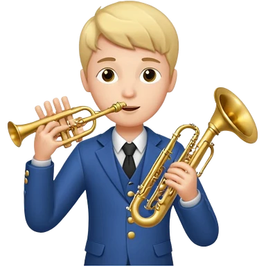 Boy with 4 arms holding a trumpet in one hand and a saxophone in the other with limbs with limbs emoji | AI Emoji Generator