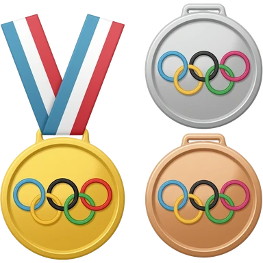 3 medals of same size (gold, silver, bronze) with olympic symbol in the same colors of the medals emoji