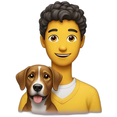 A couple, the boy with brown hair and brown eyes, and the girl with brown eyes and brown and a little orange hair. With a dog of the Italian sighthound breed emoji