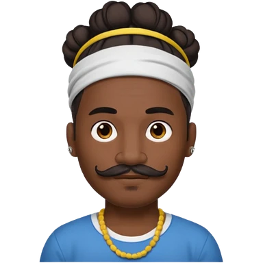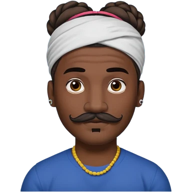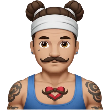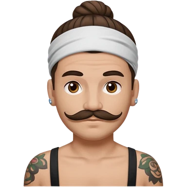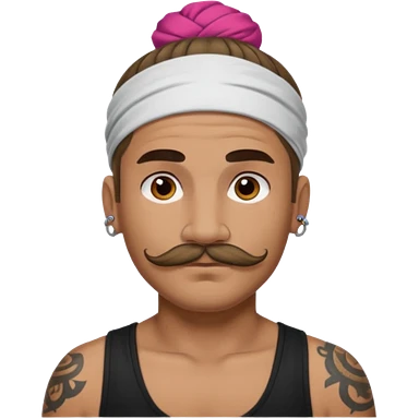 bun hair man and mustache and face tattoos very heavy and headband emoji