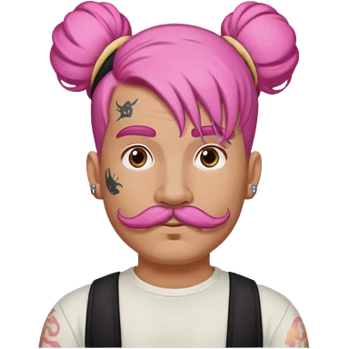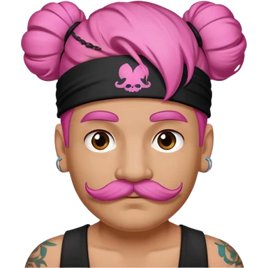 single big bun pink hair man and mustache and face tattoos very heavy and headband emoji
