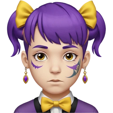 boy with bangs and purple hair and yellow hairbow and earrings and very heavy face tattoos emoji