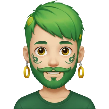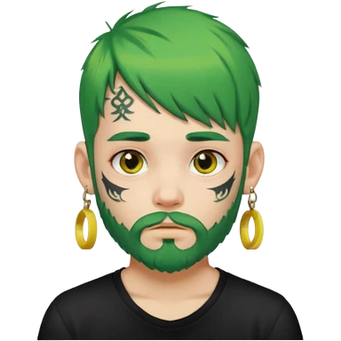 boy with bangs and green hair and yellow small hairtie on side and earrings and very heavy face tattoos and beard emoji