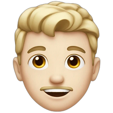 White boy with blonde hair, fluffy blonde hair with crooked teeth  emoji