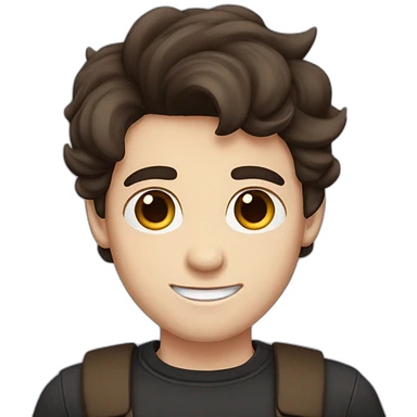 boy, big eyebrows, middle part, big teeth, pale skin, messy dark brown hair, mustache emoji