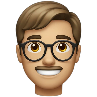 boy with big eyebrows, round glasses, bangs,big teeth, pale skin, brown hair, mustache emoji