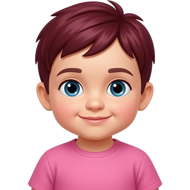a baby boy with mehroon hairs wear pink shirt emoji