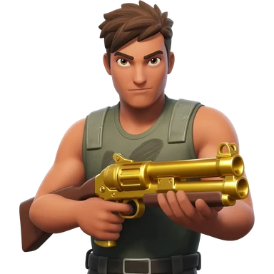 a fortnite default skin holding a gold pump shotgun emoji