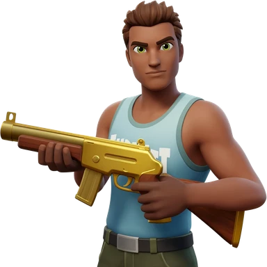 a fortnite default skin holding a gold pump shotgun non glitched clear emoji