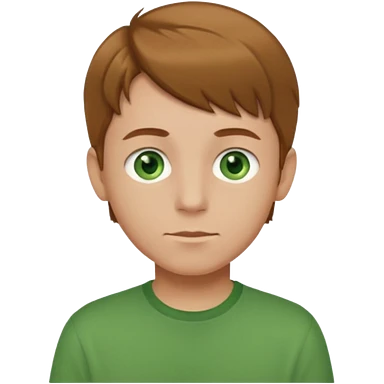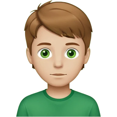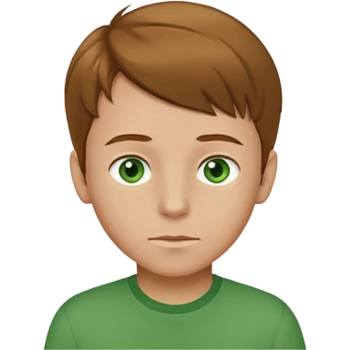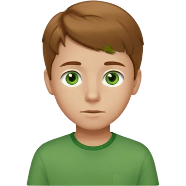boy with brown hair and green eyes with green shirt emoji | AI Emoji Generator