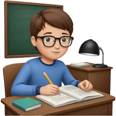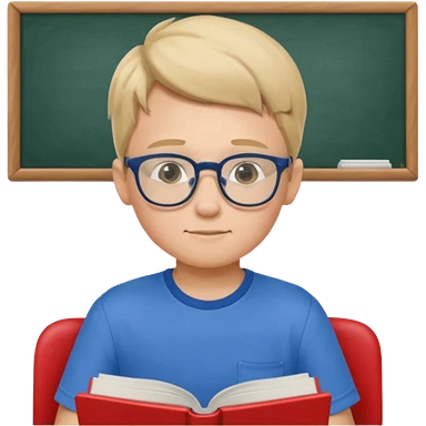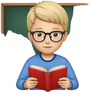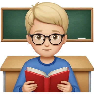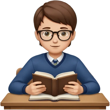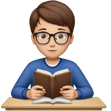 Boy with glasses sitting at school reading with his back to the camera emoji