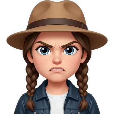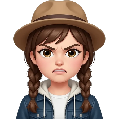 angry girl with hat and brown hairs braid wear jacket with half body close up i want to need her face close up emoji