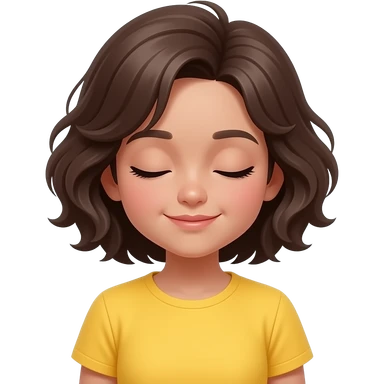 young girl with fluffy dark brown hairs close eyes with half body close up girl wear yellow shirt emoji
