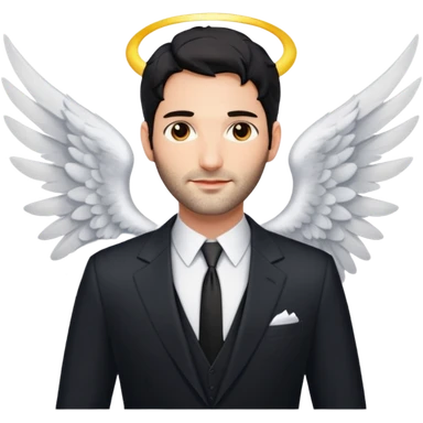 Lucifer (Tom Ellis) sous sa forme angélique, avec des ailes blanches et son costume comme dans la série. emoji