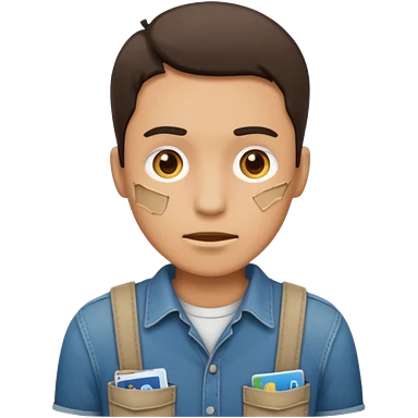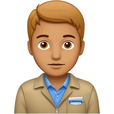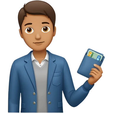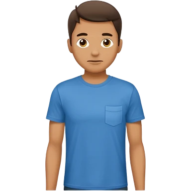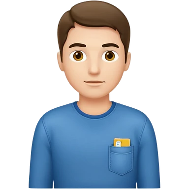Young boy, with dark hair and brown eyes, without a beard, smiling and with a computer. Dressed in a long-sleeved navy blue shirt, without a front pocket. emoji