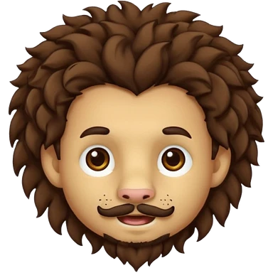 Make a cute boy lion with curly dark brown hair with a disconnected goatee and medium skin with a thin mustache emoji