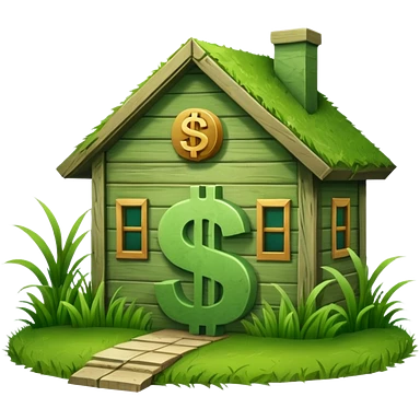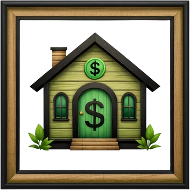 a normal simple house with a big dollar sign in the middle emoji