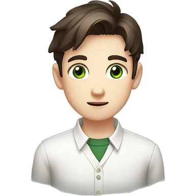 Boy, pale skin, dark green eyes, brunet, white collared shirt, blushing, nervous, hands emoji