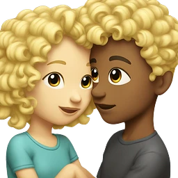 Indian boy with perm holding hand with blonde girl with straight ha emoji