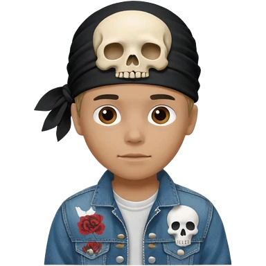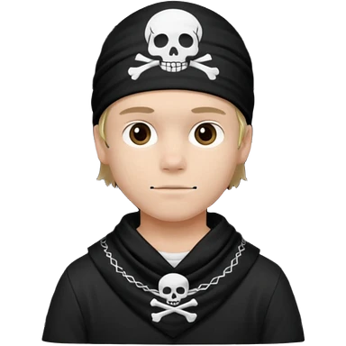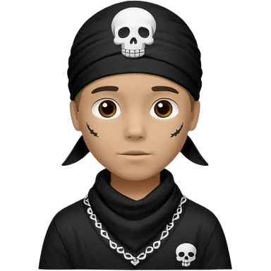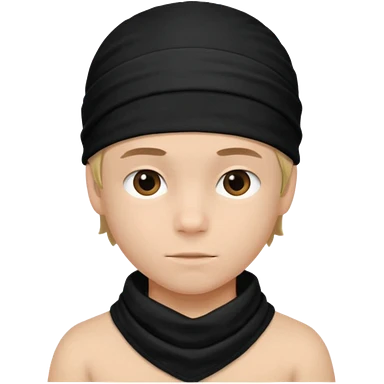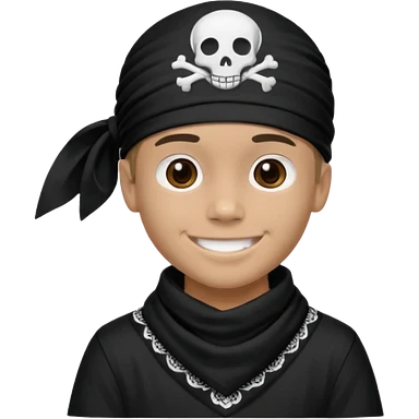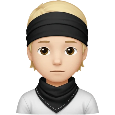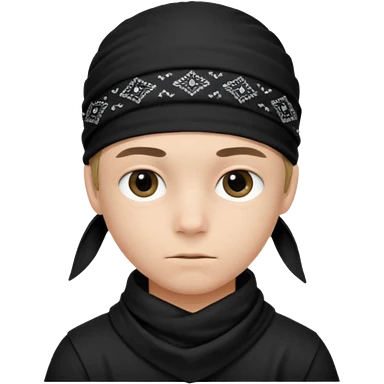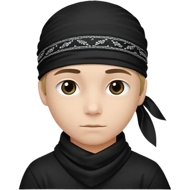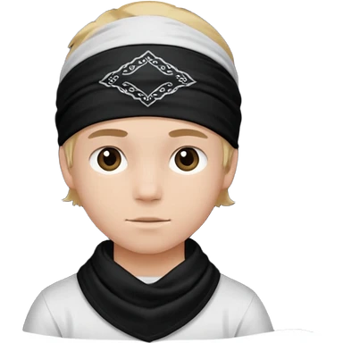 Make a boy wearing black bandana with some design on bandana emoji