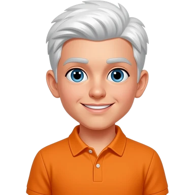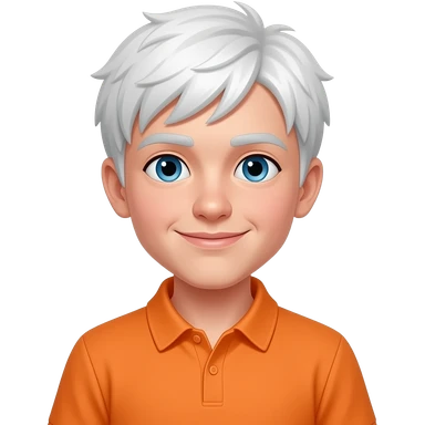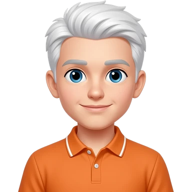 boy with white hair and beige skin and orange polo emoji | AI Emoji Generator
