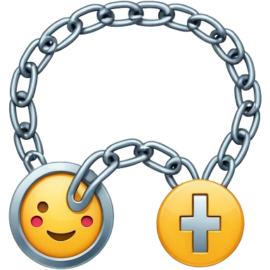 A modern cartoon-style emoji of a broken chain forming a simple checkmark shape, flat design, vibrant but clean, freeform symbol for social media emoji