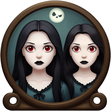 Spooky killer on mask on fancy mirror behind woman emoji