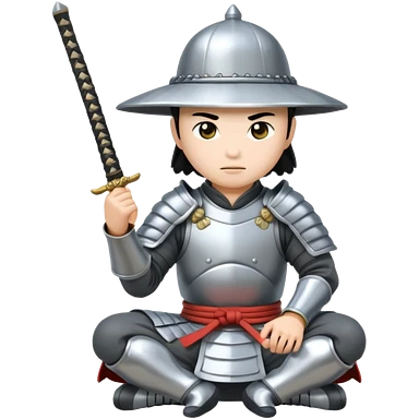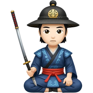 asian white skin Samurai in Hat, Samurai kneeling emoji