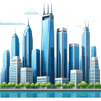 A modern cityscape with tall buildings, skyscrapers, and windows lit up, representing an urban environment full of life and activity emoji