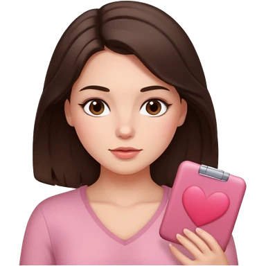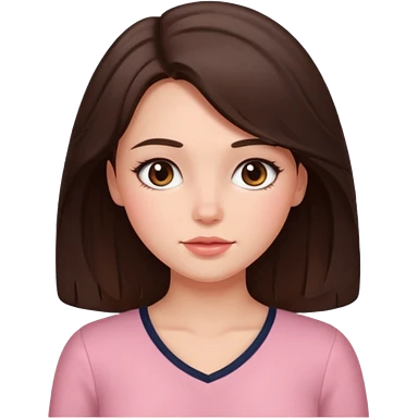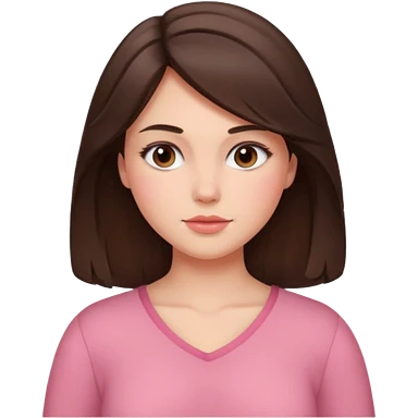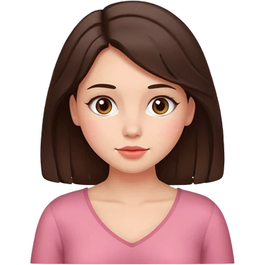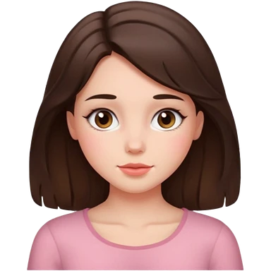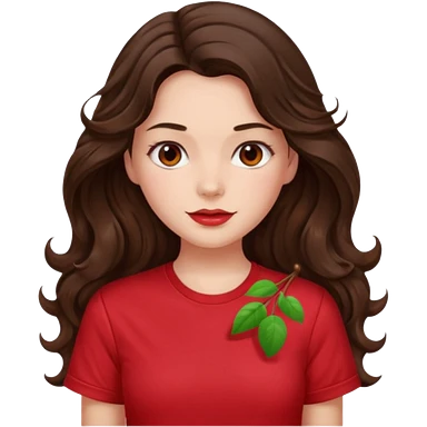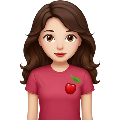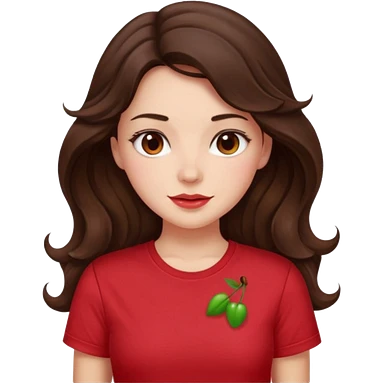 Brunette girl with long wavy hai length hair and blush, wearing cherry red tshirt emoji