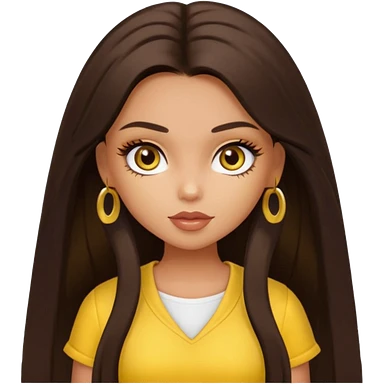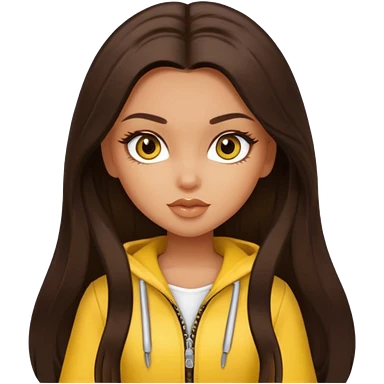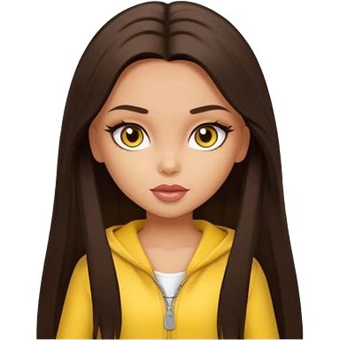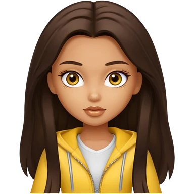 Bratz Sasha Dark brown long hair hazel eyes, yellow outfit emoji