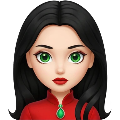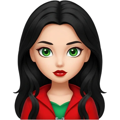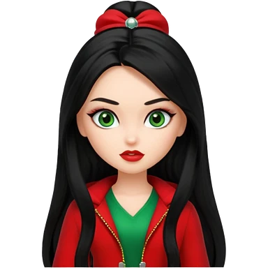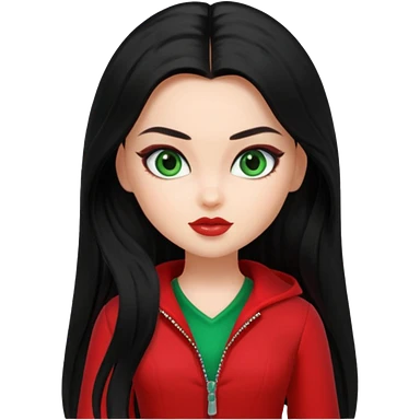Bratz Jade black long hair green eyes, red outfit emoji