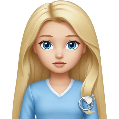 Bratz Cloe Blonde long hair blue eyes, Light blue outfit emoji