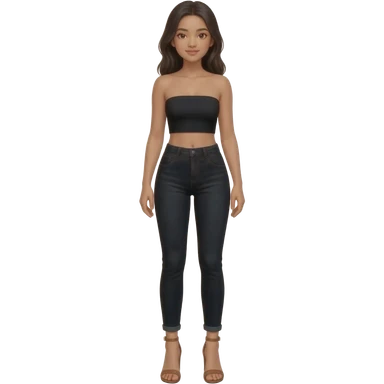Filipino girl black bra strapless top and high waisted black jeans with feet stand straight body wear high heels sandals brown stand straight emoji