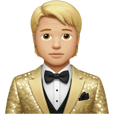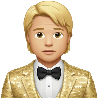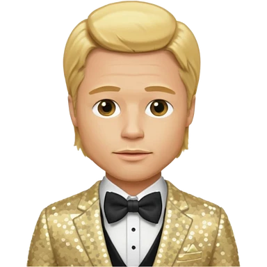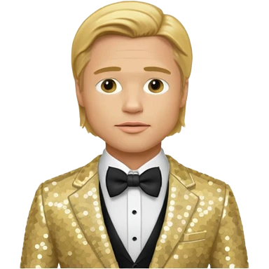 Brad Pitt with golden blonde hair, cream sequin suit with bow tie emoji