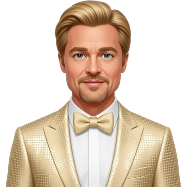 Brad Pitt with golden blonde hair, cream sequin suit with bow tie emoji