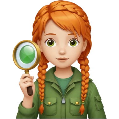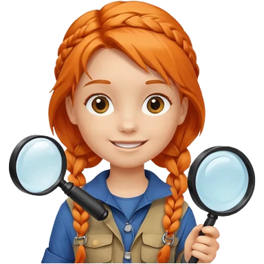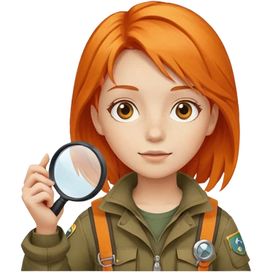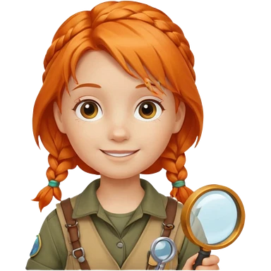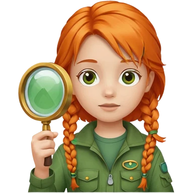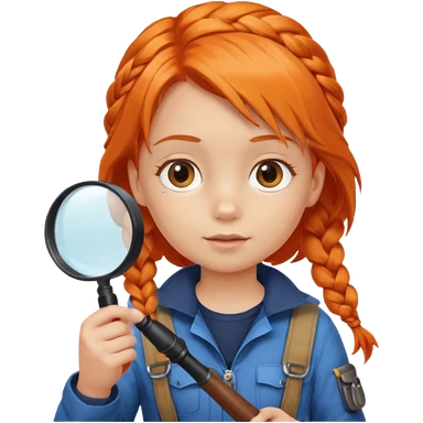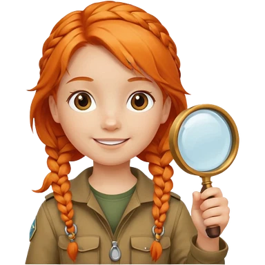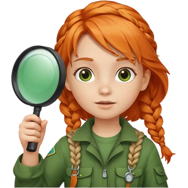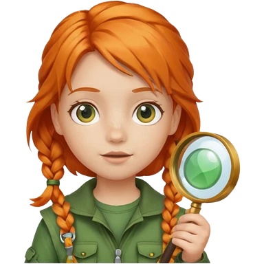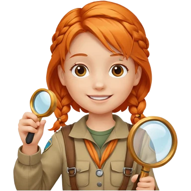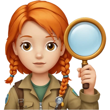 braid orange haired girl in explorer outfit, holding magnifying glass emoji | AI Emoji Generator