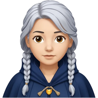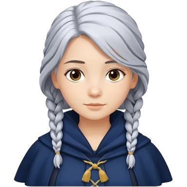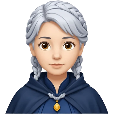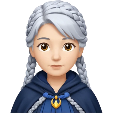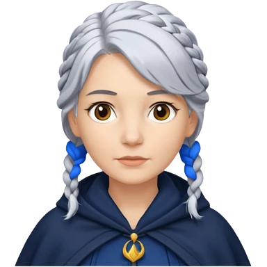 braid silver hair, navy cloak emoji
