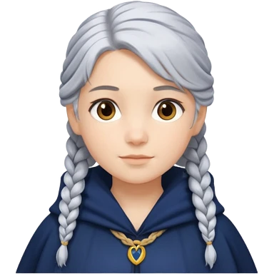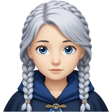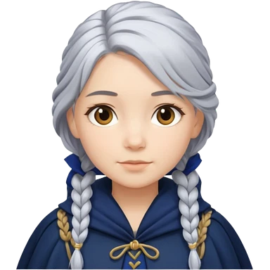 braid silver hair girl, navy cloak emoji