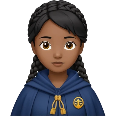 orange braids hair girl, tan skin, wear navy cloak emoji