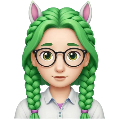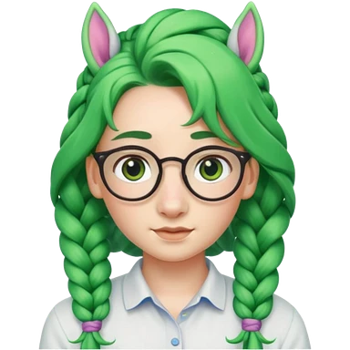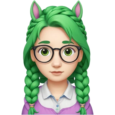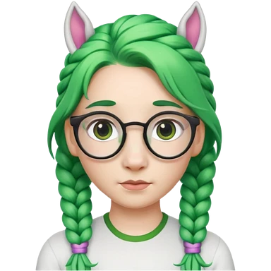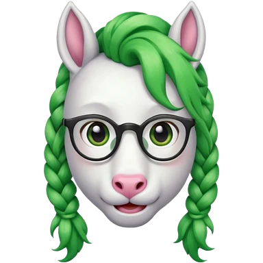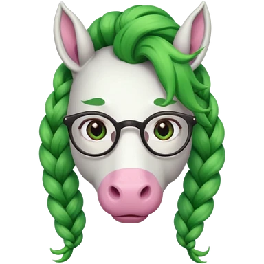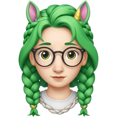braided unicorn face wiith big visible braids looking into the camera spectacled green hair and no ears emoji