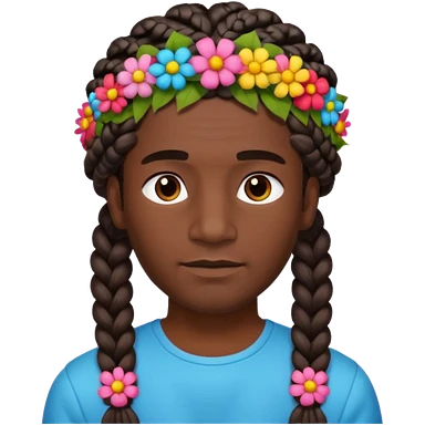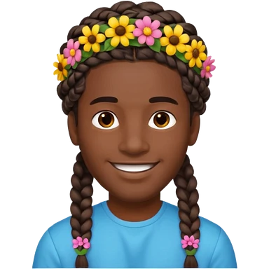 big braided man face wiith big visible braids and headband and flowers on head emoji