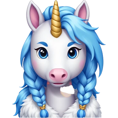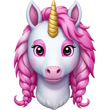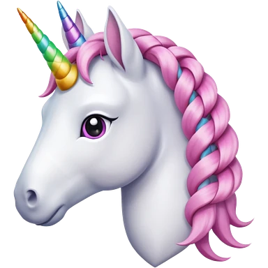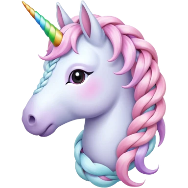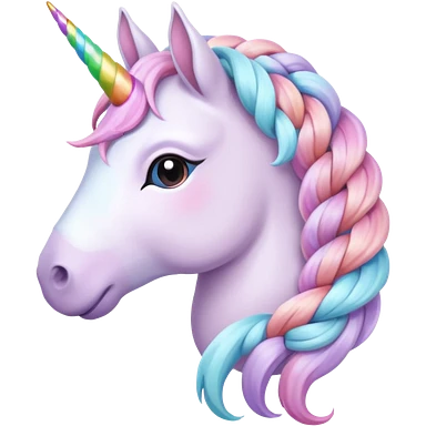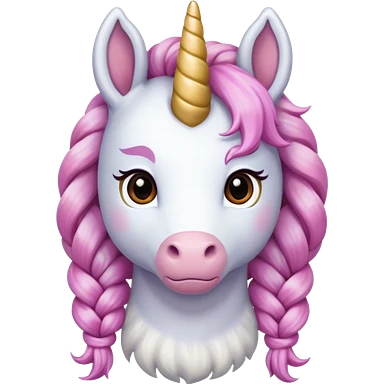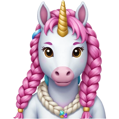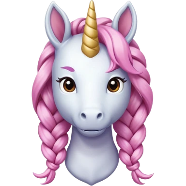 braided unicorn wiith big visible braids looking into the camera emoji
