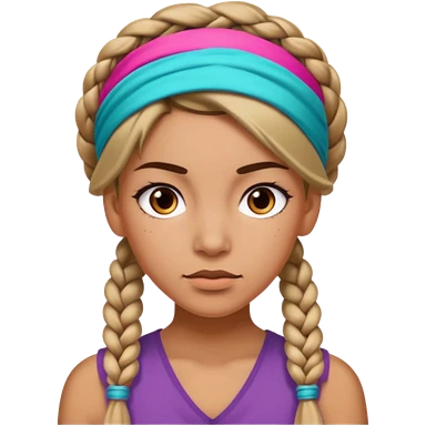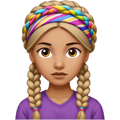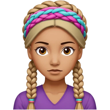 big lose braided woman face wiith big visible braids and mono color headband on head emoji
