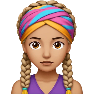 big braided woman face wiith big visible braids and headband emoji