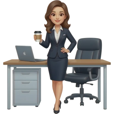 asian career beautiful girl black long wavy hair working by desktop emoji