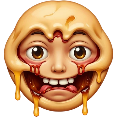 absolutely insane emoji with eyes popping out of sockets on springs, brain partially exposed, multiple gigantic polka-dotted tongues flailing in all directions, tiny explosions around head, face melting, completely deranged look emoji
